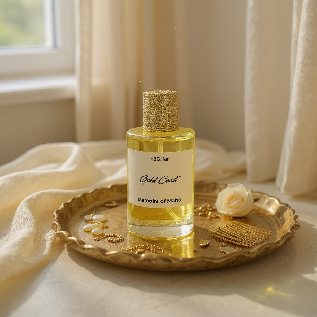 Memoirs of Mafra is a beautifully crafted fragrance that evokes a sense of nostalgia and romance. The perfume opens with a delightful blend of top notes featuring peach and mandarin, creating a juicy and radiant introduction that is both uplifting and inviting. This fruity burst sets a vibrant tone that captures attention and draws you in.
